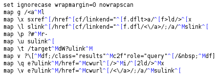 Let’s look at a specific example: a small part of a job to convert a web site coded in HTML (the busy Google Guide site, https://www.googleguide.com/) into DocBook XML format (see https://www.docbook.org/). Again, this article isn’t just about converting HTML into DocBook. It shows techniques for writing macros for any type of editing job.