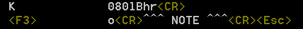 Vim accepts the old Control-V syntax but also understands new representations. Among others, <Esc> in a keymap stands for the Escape key, <F3> represents the F3 key, and <CR> stands for RETURN. As an example, here’s a keymap for the F3 key that adds three lines below the current line: a blank line, the line ^^^ NOTE ^^^, and another blank line: